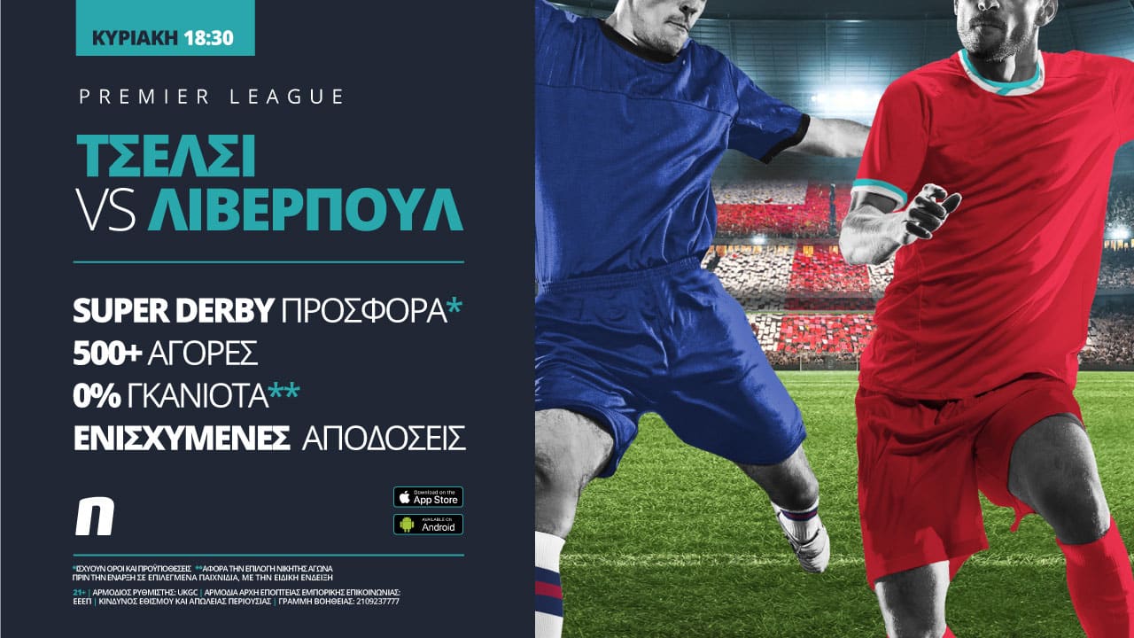 Το Τσέλσι – Λίβερπουλ παίζει με Super Derby προσφορά*, εκατοντάδες αγορές, κορυφαία ειδικά στοιχήματα και ενισχυμένες αποδόσεις.