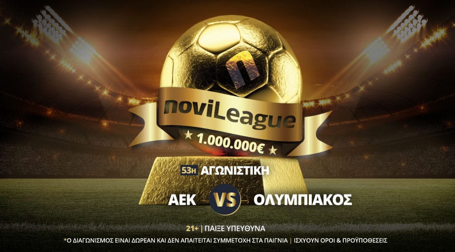 Τα playoffs της Super League επιστρέφουν στην δράση μετά την διακοπή των Εθνικών ομάδων. ΑΕΚ-Ολυμπιακός το ζευγάρι της 52ης αγωνιστικής στον μεγάλο διαγωνισμό της Novibet, σε μία αναμέτρηση όπου το βαθμολογικό κίνητρο είναι -κατά βάση- στην πλευρά των «κιτρινόμαυρων».