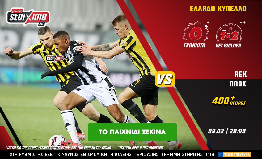 ΑΕΚ – ΠΑΟΚ με 0% γκανιότα** και πολλά ειδικά στοιχήματα στο Pamestoixima.gr!