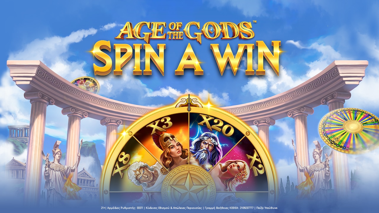 H Playtech συνεχίζει να εμπλουτίζει τους τίτλους των live casino παιχνιδιών της. Αυτή τη φορά, δημιούργησε έναν τροχό που μας γυρίζει στην εποχή των δώδεκα θεών του Ολύμπου. Ο λόγος για το εντυπωσιακό Age of Gods Spin A Win. Το εικονικό περιβάλλον μεταφέρει τον παίκτη στο βουνό των Θεών της ελληνικής μυθολογίας, με τα εντυπωσιακά γραφικά και την μουσική επένδυση να αναβαθμίζουν την αισθητική.