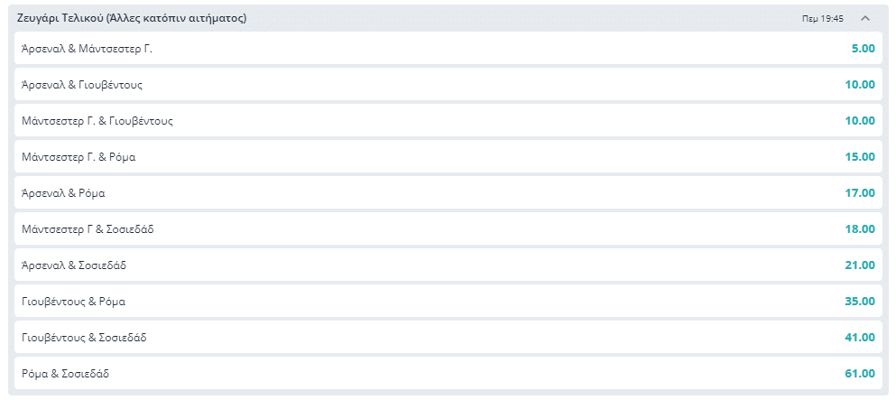 Ακολουθεί η λίστα με τα πιθανά ζευγάρια: