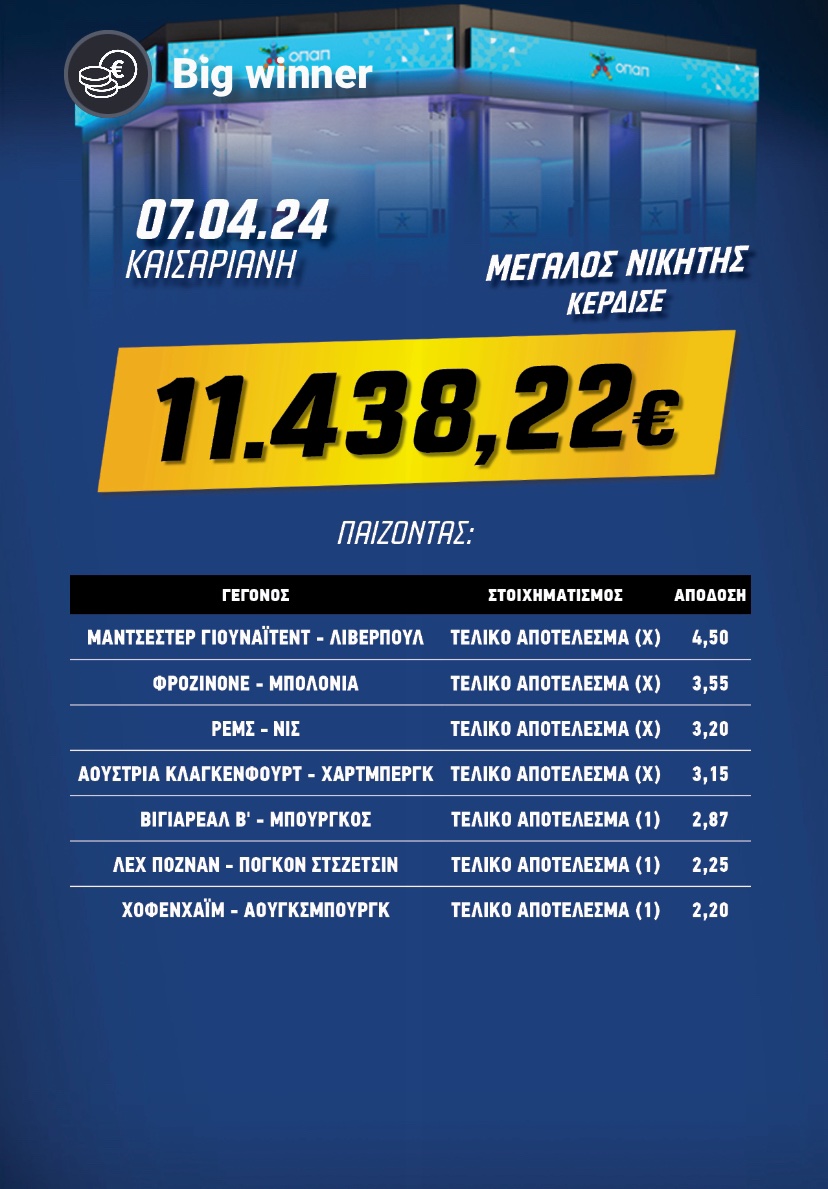 Τεράστια νίκη στο στοίχημα: Κέρδισε €86.244,88 με 7 επιλογές στο Pamestoixima.gr!