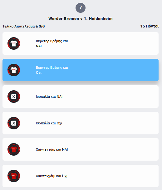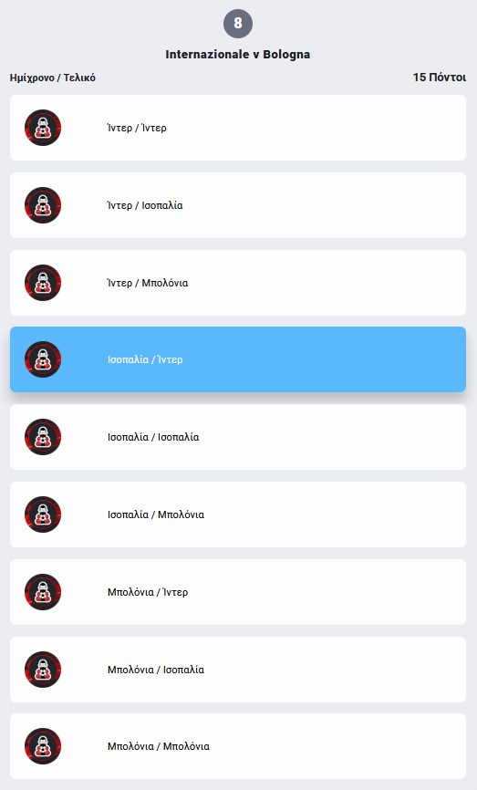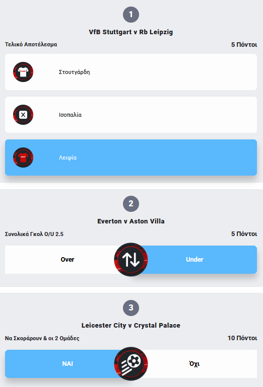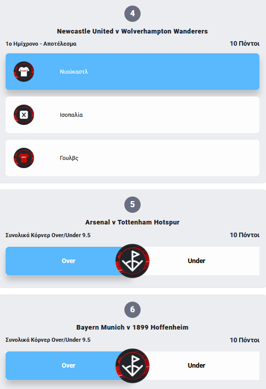 Προσοχή! Για να θεωρηθεί έγκυρη η συμμετοχή πρέπει να οριστικοποιηθεί πριν την έναρξη του πρώτου, χρονικά, αγώνα!