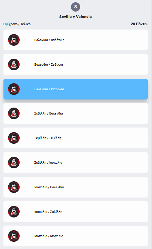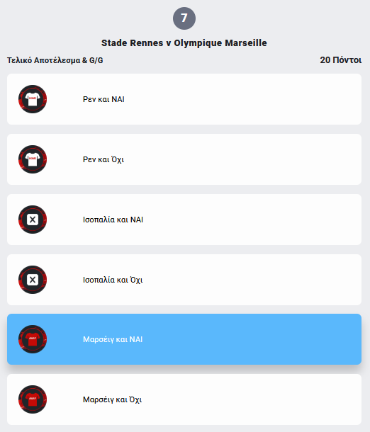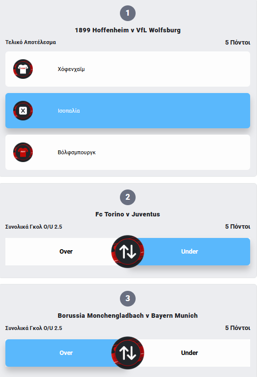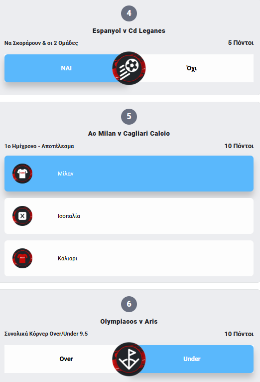 Προσοχή! Για να θεωρηθεί έγκυρη η συμμετοχή πρέπει να οριστικοποιηθεί πριν την έναρξη του πρώτου, χρονικά, αγώνα!