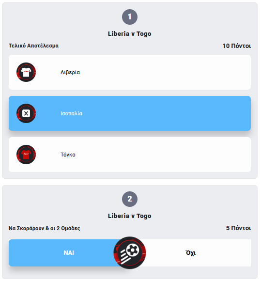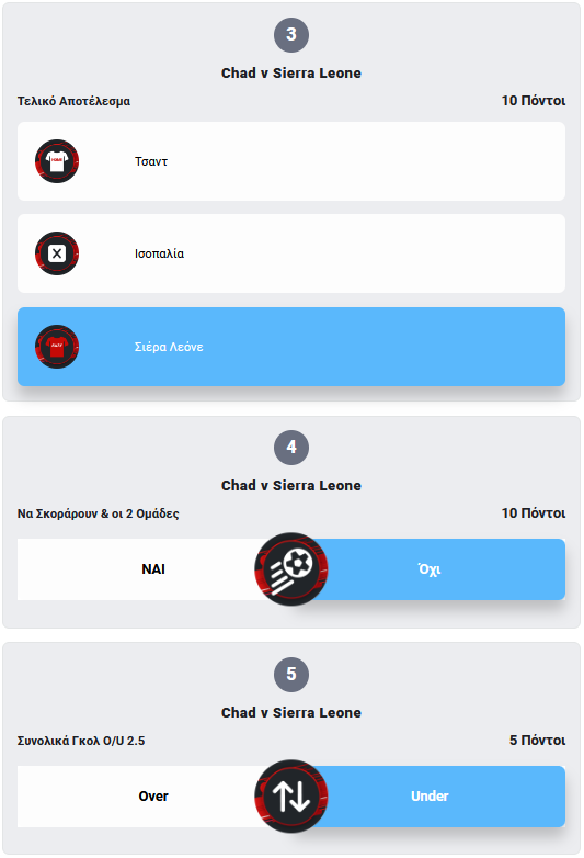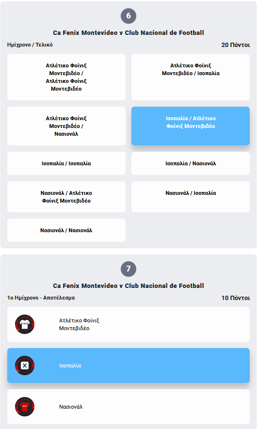 Προσοχή! Για να θεωρηθεί έγκυρη η συμμετοχή πρέπει να οριστικοποιηθεί πριν την έναρξη του πρώτου, χρονικά, αγώνα!