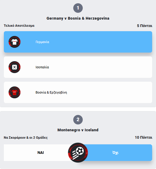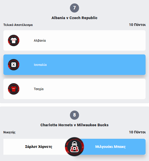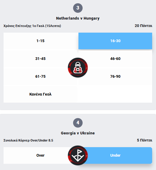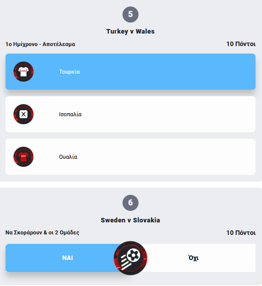 Προσοχή! Για να θεωρηθεί έγκυρη η συμμετοχή πρέπει να οριστικοποιηθεί πριν την έναρξη του πρώτου, χρονικά, αγώνα!