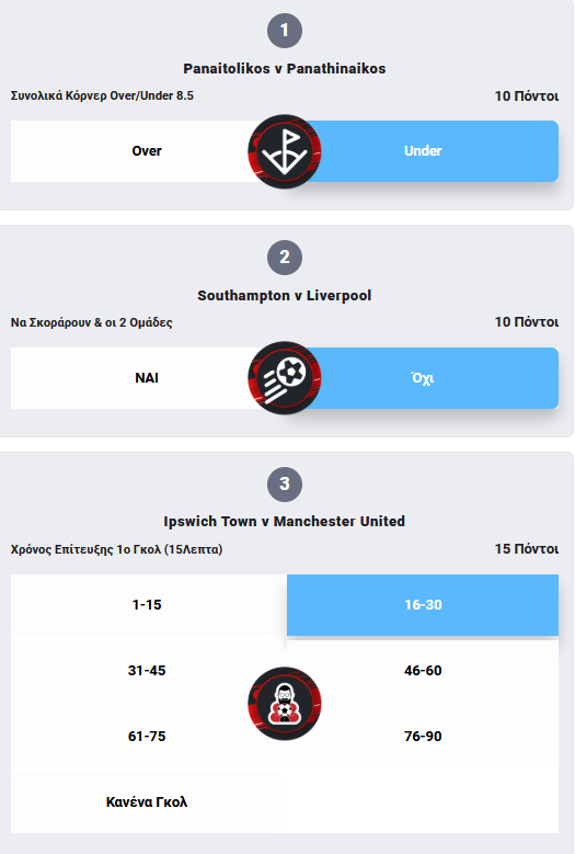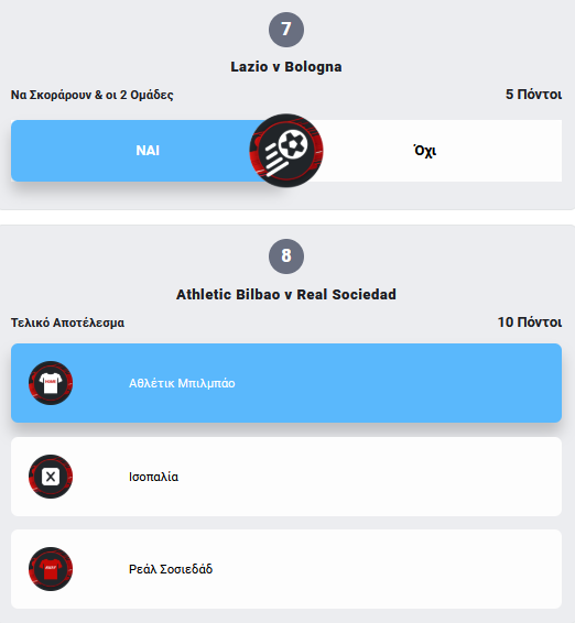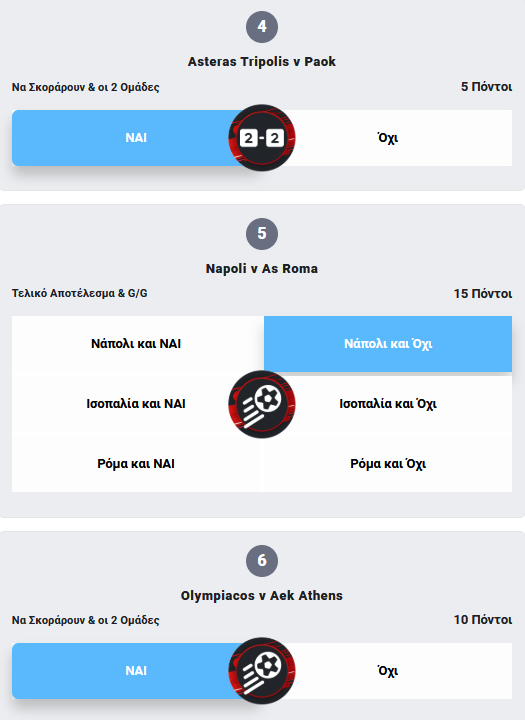Προσοχή! Για να θεωρηθεί έγκυρη η συμμετοχή πρέπει να οριστικοποιηθεί πριν την έναρξη του πρώτου, χρονικά, αγώνα!