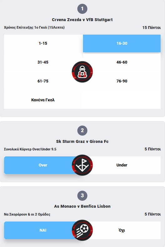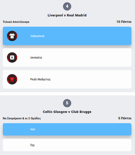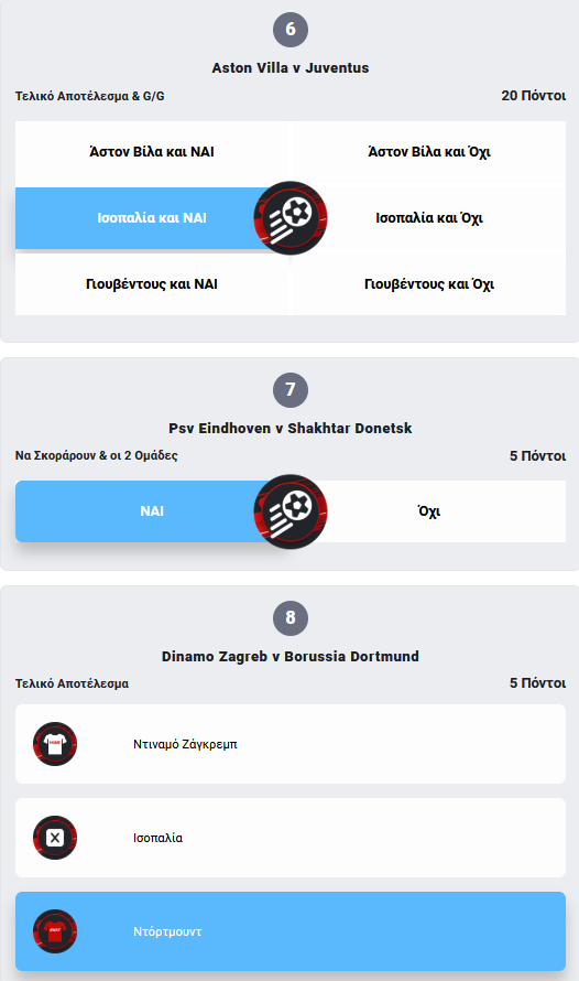 Προσοχή! Για να θεωρηθεί έγκυρη η συμμετοχή πρέπει να οριστικοποιηθεί πριν την έναρξη του πρώτου, χρονικά, αγώνα!