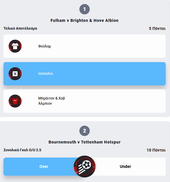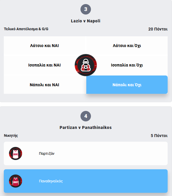 Προσοχή! Για να θεωρηθεί έγκυρη η συμμετοχή πρέπει να οριστικοποιηθεί πριν την έναρξη του πρώτου, χρονικά, αγώνα!