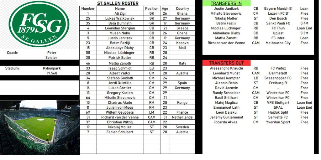 Φέτος το καλοκαίρι άλλαξε προπονητή, πούλησε τους 3 καλύτερους παίκτες της (Amdouni, Diouf, Pelmard) και απέκτησε ποδοσφαιριστές που σίγουρα είναι καλοί αλλά όχι ισάξιοί τους. Θέλει ακόμη 1-2 μεταγραφές κυρίως στο κέντρο και στην άμυνα για να κλείσει τα κενά, ειδικά τώρα που αποκόμισε το καλοκαίρι πάνω από 30 εκατομμύρια ευρώ από τις πωλήσεις παικτών της. Στόχος της για την επόμενη περίοδο όσο και να λειπεί τον κόσμο της είναι να επιστρέψει τουλάχιστον στην πρώτη 3δα του πίνακα και από εκεί και πέρα να κάνει ότι μπορεί για ψηλότερα. Πράγμα που φαντάζει δύσκολο με το ρόστερ το υπάρχον τώρα. Νέος ποπονητής της πλέον ο Γερμανός Timo Schultz, ο οποίος καλείται να αλλάξει τα δεδομένα και να χτίσει μια πιο συμπαγή ομάδα. Έδρα της το St.Jacobs Park το οποίο μαζεύει όπως πάντα κόσμο αλλά πλέον δεν αποτελεί και τόσο έδρα φόβητρο όσο παλαιότερα, όχι λόγω της ατμόσφαιρας αλλά της συνεχιζόμενης αγωνιστικής καθίζησης της ομάδας. Μεγάλο ερωτηματικό φέτος η πορεία της…