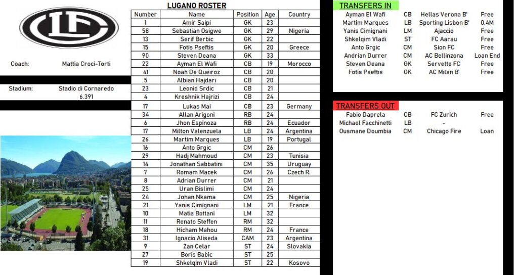 Κάθε χρόνο ανεβαίνει επίπεδο και γίνεται δυνατότερη. Έτσι και πέρσι τερμάτισε μετά από χρόνια στην 3η θέση, την στιγμή που ξεκίνησε άσχημα το πρωτάθλημα και ήταν στο δεύτερο μισό του πίνακα. Αλλά από τον χειμώνα και μετά όταν βρήκε τα πατήματά της, κατάφερε και ανέβηκε βαθμολογικά, έπαιζε μάλιστα καλό ποδόσφαιρο και έφτασε και μέχρι τον τελικό του Κυπέλλου όπου ηττήθηκε από την Young Boys. Φέτος και δεδομένου του ότι θα είναι σίγουρα σε ομίλους στην Ευρώπη, είτε Europa League είτε Conference League, φρόντισε να ενισχυθεί σημαντικά παίρνοντας παίκτες για όλες τις θέσεις για να έχει πολλές επιλογές και να μπορέσει να βγάλει την χρονιά σωστά. Στόχος της να διατηρηθεί εντός τριάδας και να κάνει ότι περισσότερη μπορεί στην Ευρώπη, εξού όπως είπαμε η δυνατή ενίσχυση που έκανε. Ξεχωρίζει η απόκτηση του πολύπειρου και ποιοτικού μέσου Anto Grgic από την υποβιβασμένη Sion FC. Αντιθέτως, έχασε μόλις 3 παίκτες, οι 2 βασικοί τους οποίους τους αντικατέστησε και με το παραπάνω θεωρητικά. Έδρα της το Cornaredo το οποίο δεν αποτελεί και την πιο αφιλόξενη έδρα, όμως αυτό το καλοκαίρι γίνονται εργασίες βελτίωσης και επέκτασής του και σίγουρα αναμέται πιο πολύς κόσμος. Να τονίσουμε ότι τους αγώνες των ομίλων στην Ευρώπη θα τους δώσει στο Letzigrund της Ζυρίχης.