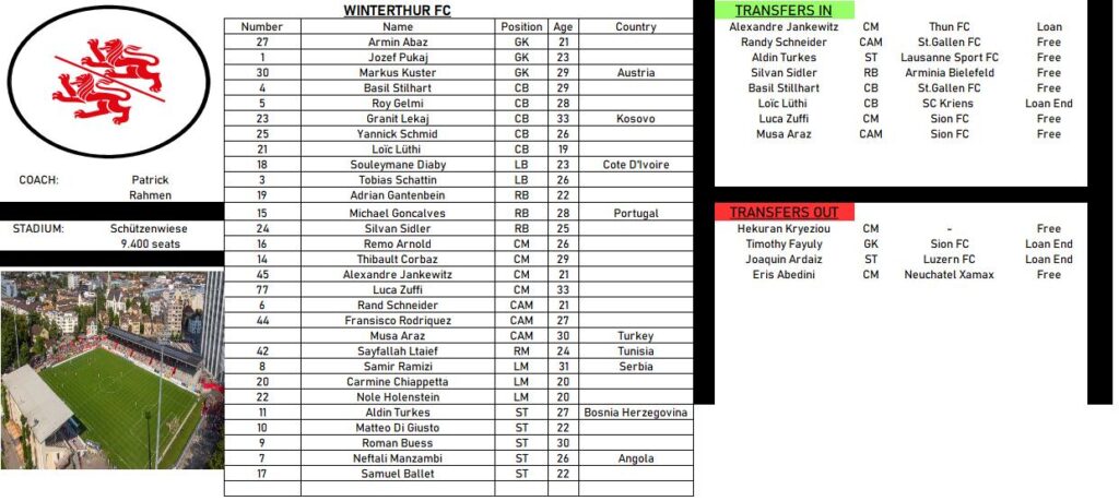 Προπονητής ο έμπειρος Patrick Rahmen ο Ελβετός που αντικατέστησε τον Bruno Berner. Σε αυτόν πίστωνεται η αλήθεια σε μεγάλο βαθμό η περσινή της παραμονή καθώς είχε λιγοστές καλές επιλογές αλλα εν τέλει έμεινε στην κατηγορία η ομάδα. Επίσης δυνατή έδρα το μικρό Schόtzenwiese που είναι στα εντός κατάμεστο σχεδόν.