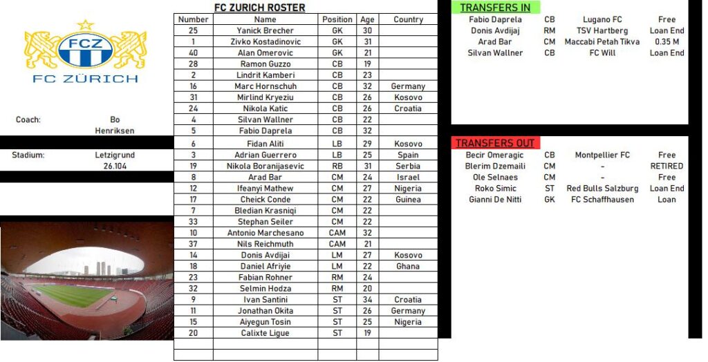 Την περσινή σεζόν πρέπει και θέλει να την διαγράψει η ομάδα της Ζυρίχης καθώς ήταν αποτυχία εξ ολοκλήρου. Μπήκε ως πρωταθλήτρια του 2022, αποκλείστηκε νωρίς από την Ευρώπη, άλλαξε προπονητή νωρίς, βρέθηκε τέλει Νοέμβρη τελευταία στην βαθμολογία με μεγάλη διαφορά και κίνδυνο να υποβιβαστεί και στο τέλος απλά τερμάτισε 8η αποφεύγοντας τα χειρότερα.