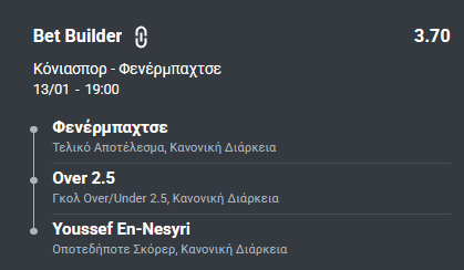Στο σημερινό πρόγραμμα (Δευτέρα, 13/1), επιλέγουμε την αναμέτρηση της Κόνιασπορ με τη Φενέρμπαχτσε: