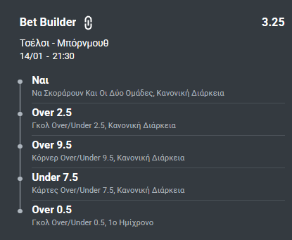 Στο σημερινό πρόγραμμα (Τρίτη, 14/1), επιλέγουμε την αναμέτρηση της Τσέλσι με την Μπόρνμουθ: