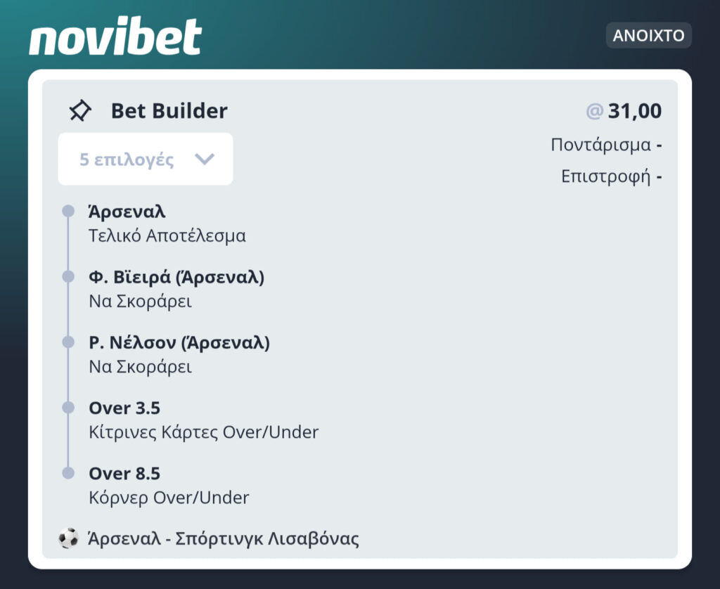 Από αυτήν εδώ τη στήλη, προσπαθούμε να βρούμε το καλύτερο bet builder της ημέρας, μέσα από την Novibet.