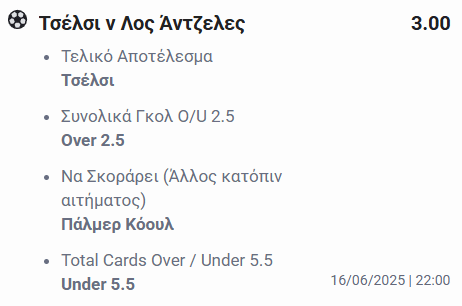 Στο σημερινό πρόγραμμα (Δευτέρα, 16/6), επιλέγουμε την αναμέτρηση της Τσέλσι με το Λος Άντζελες: