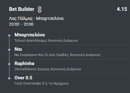 Στο σημερινό πρόγραμμα (Σάββατο, 22/2), επιλέγουμε την αναμέτρηση της Λας Πάλμας με την Μπαρτσελόνα: