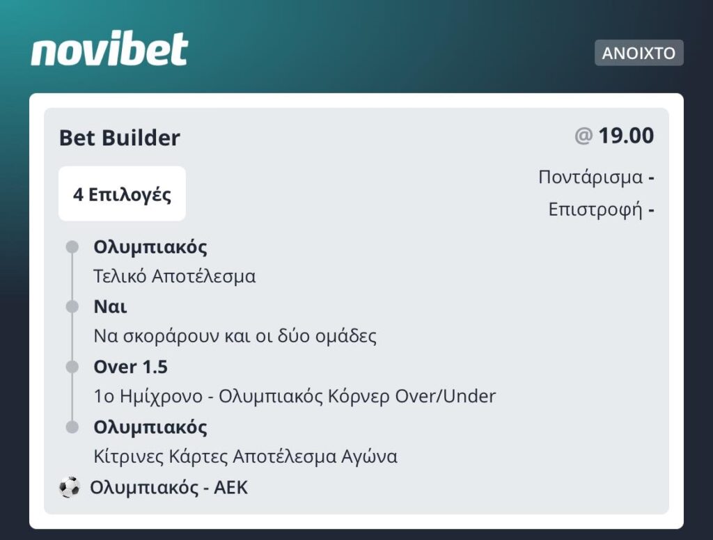 Από αυτήν εδώ τη στήλη, προσπαθούμε να βρούμε το καλύτερο bet builder της ημέρας, μέσα από την Novibet.