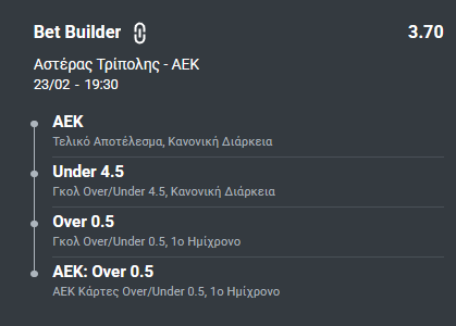 Στο σημερινό πρόγραμμα (Κυριακή, 23/2), επιλέγουμε την αναμέτρηση του ASTERA AKTOR με την ΑΕΚ: