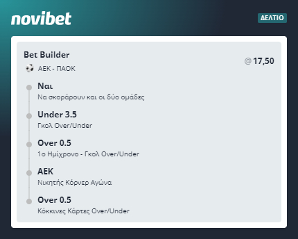 Από αυτήν εδώ τη στήλη, προσπαθούμε να βρούμε το καλύτερο bet builder της ημέρας, μέσα από την Novibet.