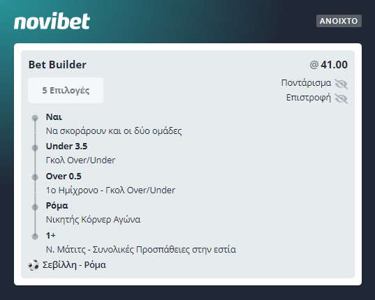 Από αυτήν εδώ τη στήλη, προσπαθούμε να βρούμε το καλύτερο bet builder της ημέρας, μέσα από την Novibet.