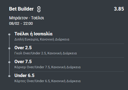 Στο σημερινό πρόγραμμα (Σάββατο, 8/2), επιλέγουμε την αναμέτρηση της Μπράιτον με την Τσέλσι: