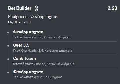 Στο σημερινό πρόγραμμα (Πέμπτη, 9/1), επιλέγουμε την αναμέτρηση της Κασίμπασα με τη Φενέρμπαχτσε: