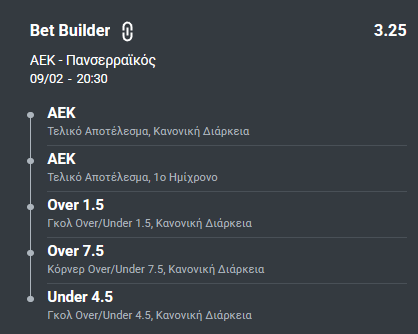 Στο σημερινό πρόγραμμα (Κυριακή, 9/2), επιλέγουμε την αναμέτρηση της ΑΕΚ με τον Πανσερραϊκό: