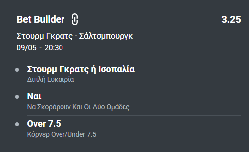Στο σημερινό πρόγραμμα (Παρασκευή, 9/5), επιλέγουμε την αναμέτρηση της Στουρμ Γκρατς με τη Σάλτσμπουργκ: