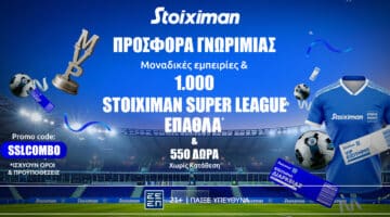 Προσφορά χωρίς κατάθεση* με 1000 Stoiximan Super League Έπαθλα & 550 Δώρα*