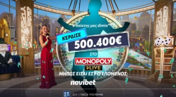 Μεγάλη Νίκη στο Καζίνο της Novibet: Παίκτης Κέρδισε 500.400€ στο Monopoly Live!