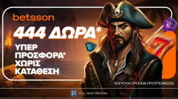 Betsson: Σούπερ προσφορά* με 444 δώρα χωρίς κατάθεση είναι εδώ!