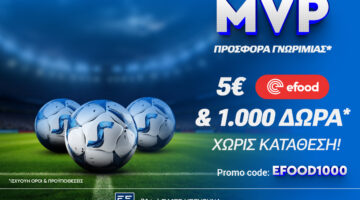 Προσφορά* χωρίς κατάθεση* με 1000 Δώρα* & Κουπόνι efood από τη Stoiximan!