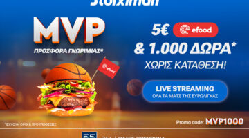 ΜVP Προσφορά* από τη Stoiximan με 1000 Δώρα* χωρίς κατάθεση* & κουπόνι efood!