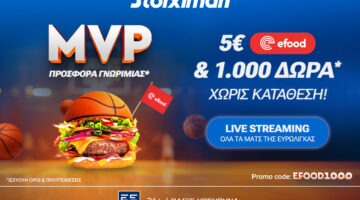 ΜVP Προσφορά* από τη Stoiximan με Κουπόνι efood & 1000 Δώρα* χωρίς κατάθεση*!
