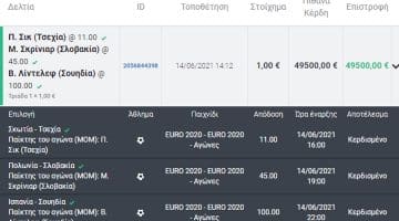 Απίστευτη Euro-έμπνευση: Με 1€ κέρδισε 49.500€ στα ματς της Δευτέρας στη Stoiximan!