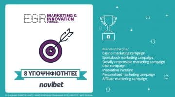 Novibet: Οκτώ Υποψηφιότητες στα EGR Marketing & Innovation Awards 2021