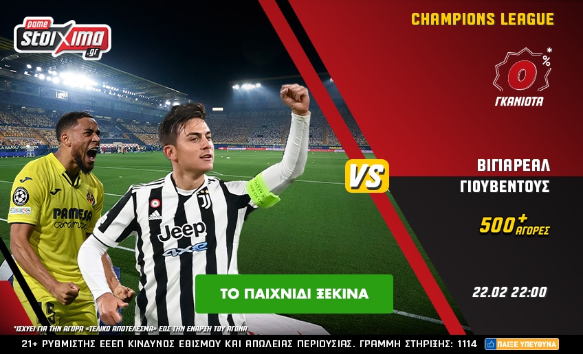 Από εκεί και πέρα, στο ποδοσφαιρικό πρόγραμμα της Τρίτης (22/02) ξεχωρίζουν οι αναμετρήσεις του Champions League. Η Βιγιαρεάλ υποδέχεται τη Γιουβέντους σε μια σπουδαία αναμέτρηση που ζεις με 0% γκανιότα** και περισσότερα από 500 special bets στο Pamestoixima.gr. Επίσης, διαθέσιμες είναι ενισχυμένες αποδόσεις στους σκόρερ τόσο της αναμέτρησης Βιγιαρεάλ – Γιουβέντους, όσο και στο παιχνίδι της Τσέλσι με τη Λιλ.