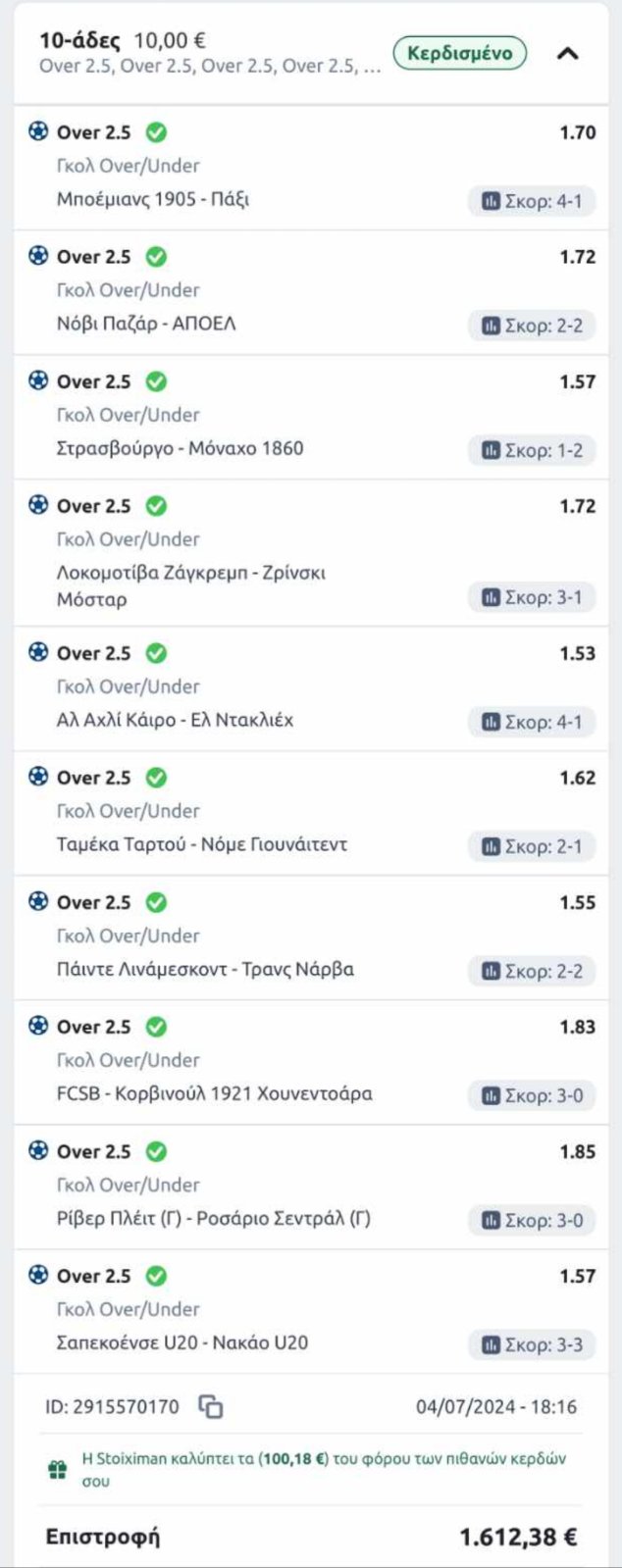 Ίσως στον τζόγο όπως ο σημερινός μας τύπος! Γιατί περί τζόγου πρόκειται όταν παίζεις δέκα Over 2,5 σε ένα δελτίο και σου κάθονται και τα δέκα!