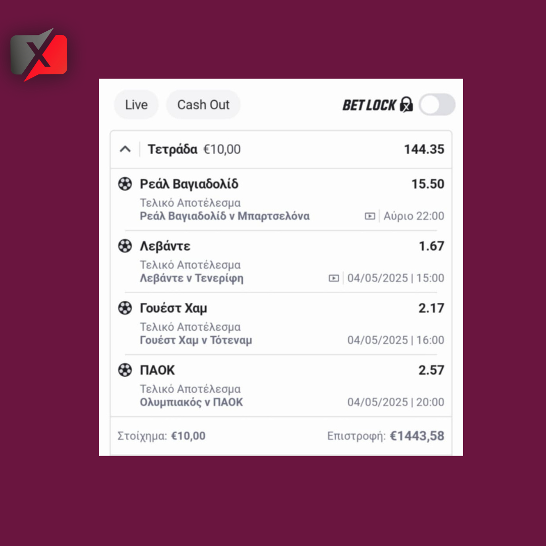 Bet Lock* επιλογές με σούπερ απόδοση 144.35!