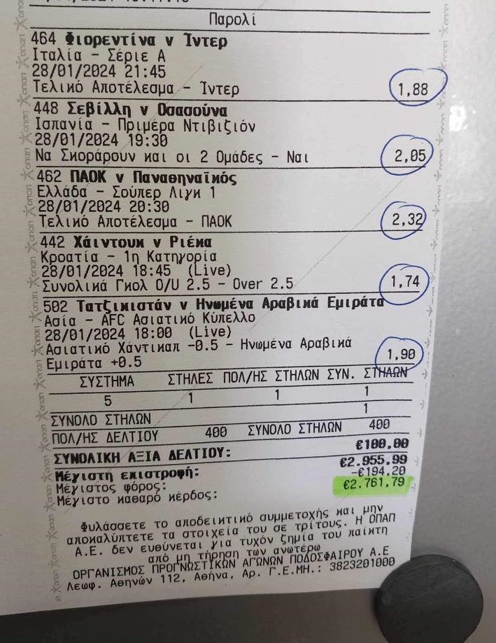 Αποδόσεις πολύ τίμιες, γύρω από το διπλασιασμό και συνολικά το δελτίο επέστρεφε σχεδόν 30 φορές τα λεφτά του!