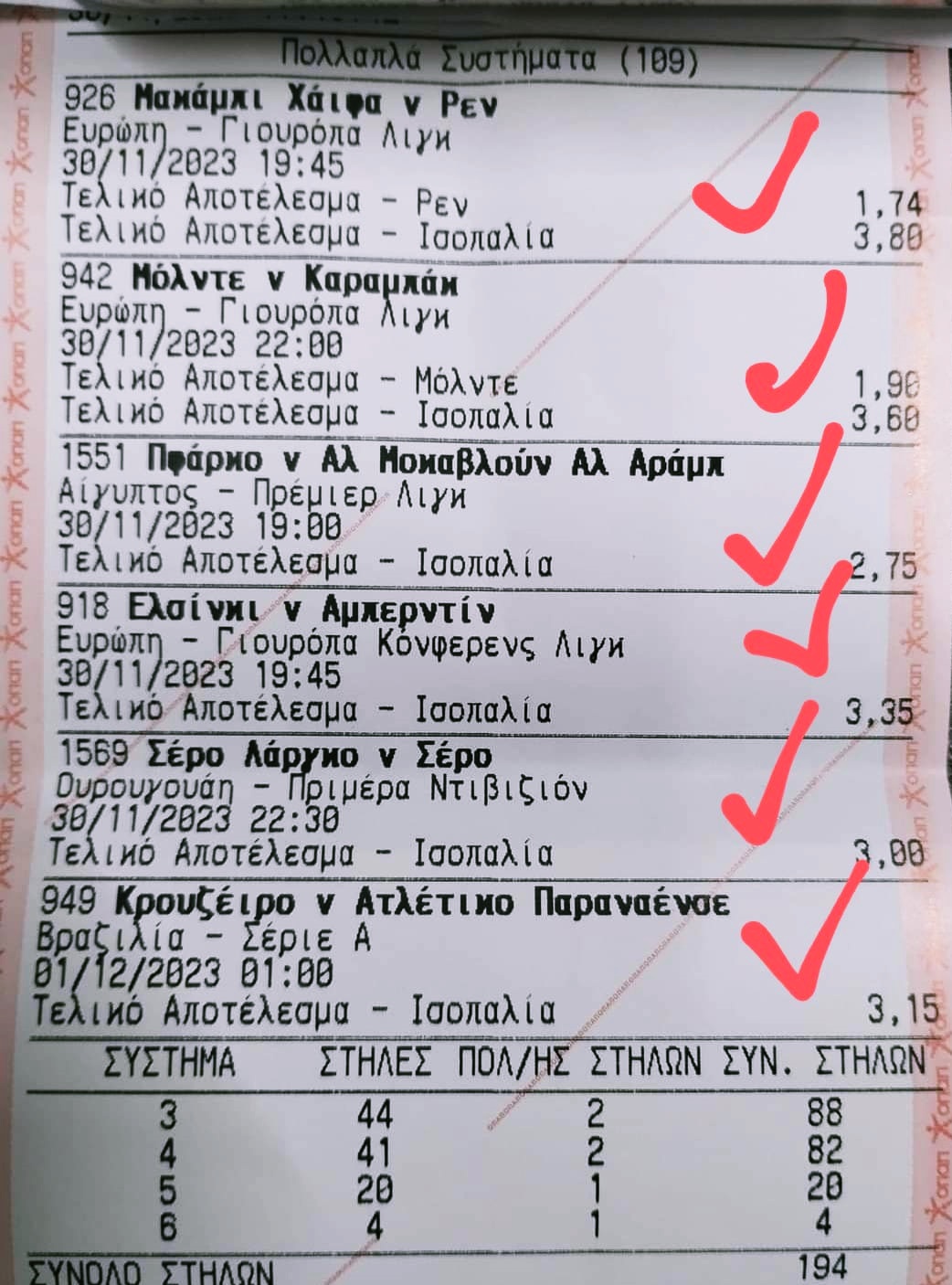 Δελτίο-σαλάτα! Λίγο απ’ όλα μέσα! Από Europa & Conference League, μέχρι Premier League Αιγύπτου, Primera Division Ουρουγουάης και Serie A Βραζιλίας. Δεν ξέρουμε τι όνειρο είδε ο μάγκας και τα συνδύασε έτσι, αλλά δεν έχει και καμιά ιδιαίτερη σημασία!