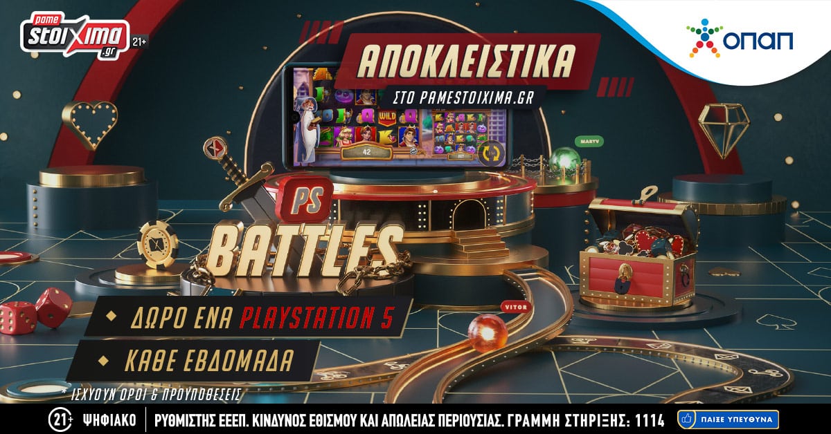 Στο PS Battles, το δωρεάν παιχνίδι του Pamestoixima.gr, εφόσον καταφέρετε να είσαστε ο παίκτης με τους περισσότερους πόντους κατά τη διάρκεια της εβδομάδας, θα μπορέσετε να κερδίσετε το πολυπόθητο PS5!