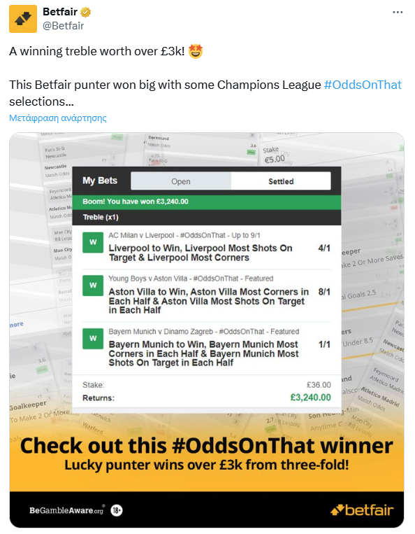 Τέλος, στο Μόναχο όπου η Μπάγερν ακόμα βάζει γκολ στην Ντιναμό Ζάγκρεμπ. Και εδώ ό,τι έριξε στο Γιούνγκ Μπόις – Άστον Βίλα, με νίκη των Βαβουρών. Ευκολάκι αυτό, στο 2.00.