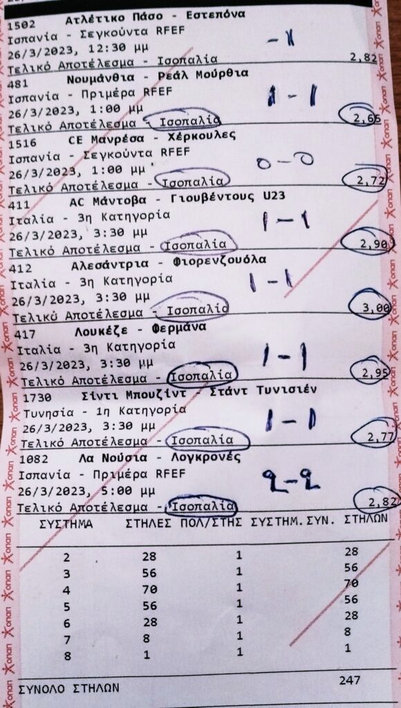 Ω ρε μάνα, μια δελτιάρα! Οκτάδα χιναριών σε ζητούμενα, με 247 στήλες! Τα έψαχνε όλα ο τυπάς. Από τις δυάδες μέχρι και την οκτάδα!