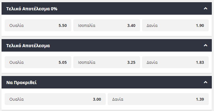 Η Ουαλία τερμάτισε στην δεύτερη θέση του πρώτου ομίλου, τη στιγμή που η Δανία πέρασε το μεγάλο σοκ με τον Κρίστιαν Έρικσεν στην πρεμιέρα της διοργάνωσης. Πλέον οι δανοί στο πρώτο σπίτι του Έρικσεν καλούνται να επιβεβαιώσουν τον τίτλο του φαβορί, με τους ουρανούς πάντως να αποτελούν δύσκολο αντίπαλο για κάθε ομάδα. Μόλις στο 1,39 προσφέρεται η πρόκριση των Σκανδιναβών, ενώ σε περίπτωση που κάποιος επιλέξει τη νίκη της Ουαλίας στην κανονική διάρκεια της αναμέτρησης θα λάβει απόδοση κοντά στο 5,50.