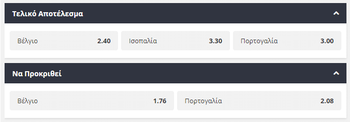 Το πρώτο πραγματικά μεγάλο ντέρμπι του Ευρωπαϊκού Πρωταθλήματος θα λάβει χώρα στην Σεβίλλη, με το Βέλγιο και την Πορτογαλία να διασταυρώνουν τα ξίφη τους, αλλά μόνο μία από τις δύο θα καταφέρει να φτάσει στα προημιτελικά. Αμφότερες έχουν ταλέντο στο ρόστερ τους αλλά και εμπειρία και όλα τα ενδεχόμενα στο συγκεκριμένο ζευγάρι είναι πιθανά. Στο στρατόπεδο του Βελγίου ξεχωρίζει η παρουσία των Λουκάκου και Ντε Μπρούιν ενώ από την Πορτογαλία ο Κριστιάνο Ρονάλντο δείχνει να είναι μία ομάδα μόνος του. Μοιρασμένες οι αποδόσεις της νίκης και από τους μπουκ, δίνοντας ελαφρύ προβάδισμα στο Βέλγιο που προσφέρεται στο 1,76. Μία πιθανή νίκη της Πορτογαλίας στο ενενηντάλεπτο θα τριπλασιάσει το ποντάρισμα αυτών που θα την επιλέξουν.