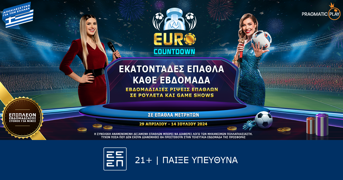 Το Euro Countdown, λοιπόν, είναι γεγονός με μεγάλα έπαθλα μετρητών! Το τουρνουά που ξεκίνησε στις 29 Απριλίου, θα είναι διαθέσιμο για όλους τους Έλληνες παίκτες έως και την ημέρα του τελικού του Ευρωπαϊκού Πρωταθλήματος, ούτως ώστε να διεκδικήσουν συναρπαστικά δώρα και να απολαύσουν μοναδική εμπειρία ζωντανού καζίνο στα παιχνίδια της Pragmatic Play.