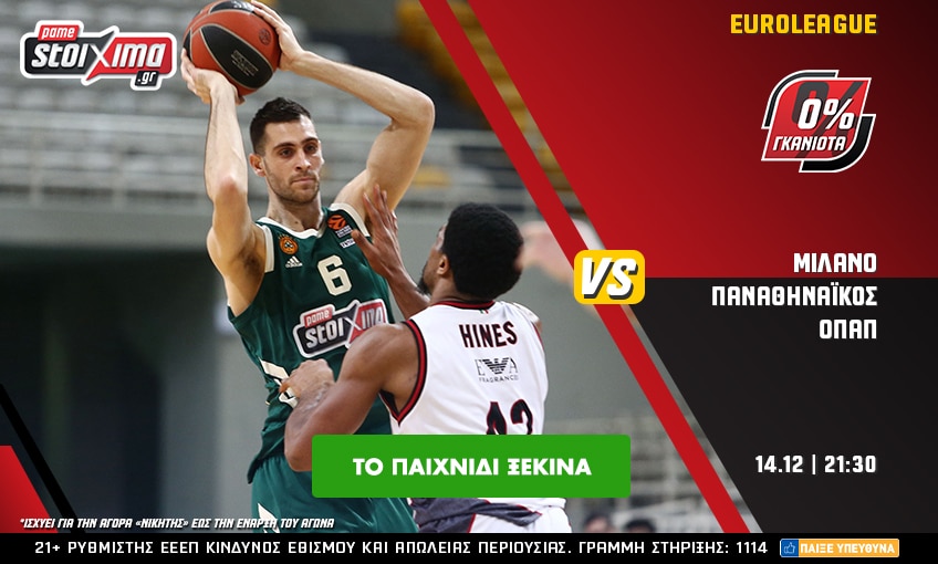 Από εκεί και πέρα, τη δράση της εκτός έδρας αναμέτρησης του Παναθηναϊκού ΟΠΑΠ στο Μιλάνο απέναντι στην Αρμάνι τη ζεις με 0% γκανιότα** και μια πλούσια λίστα με special bets παικτών και ομάδων στο Pamestoixima.gr!